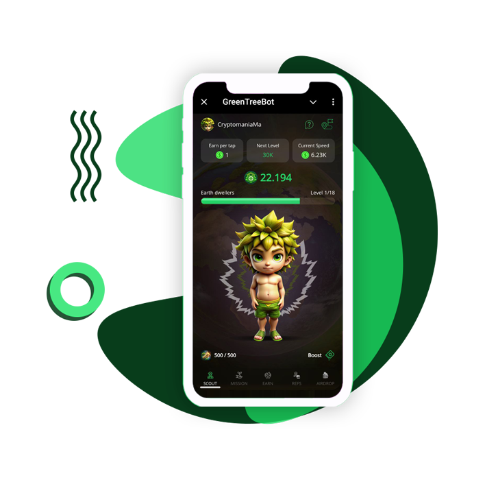 Greentree is a Telegram game where you get GreenTree coins by clicking. Players can join groups (Telegram channels and chats), complete missions, upgrade your levels and tap to increase your coins!